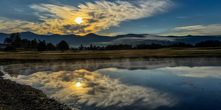 Just sat on the veranda early in the morning, watching the sun rise from behind the mountains was a pleasant way to start the day. Two musts in the area are the Mount Washington Cog Railway and the Conway Scenic Railroad.